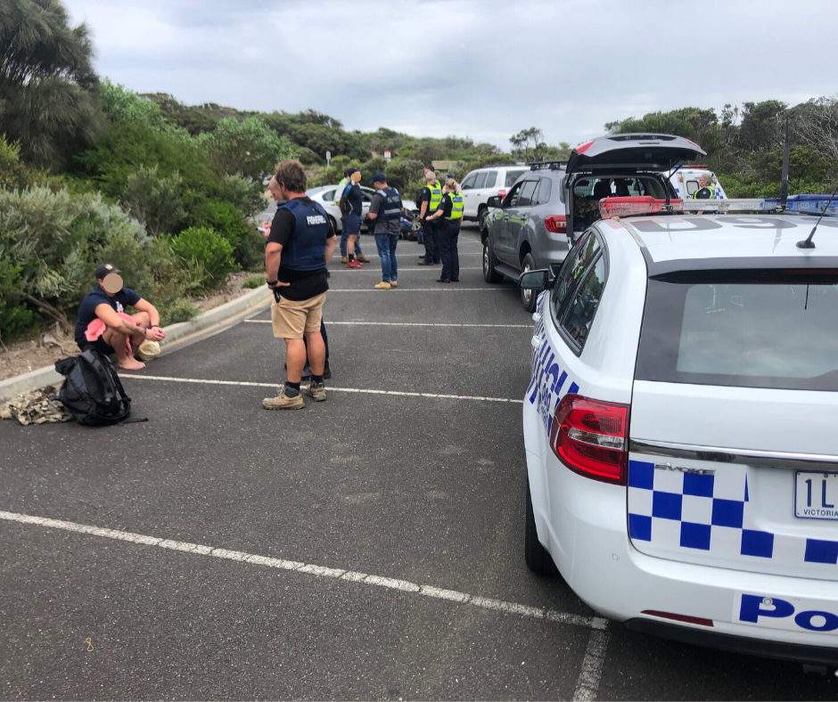 “Officers observed four of the men walk from a Cape Schanck car park down to the rocks, leaving one of the men at the car park as a lookout.