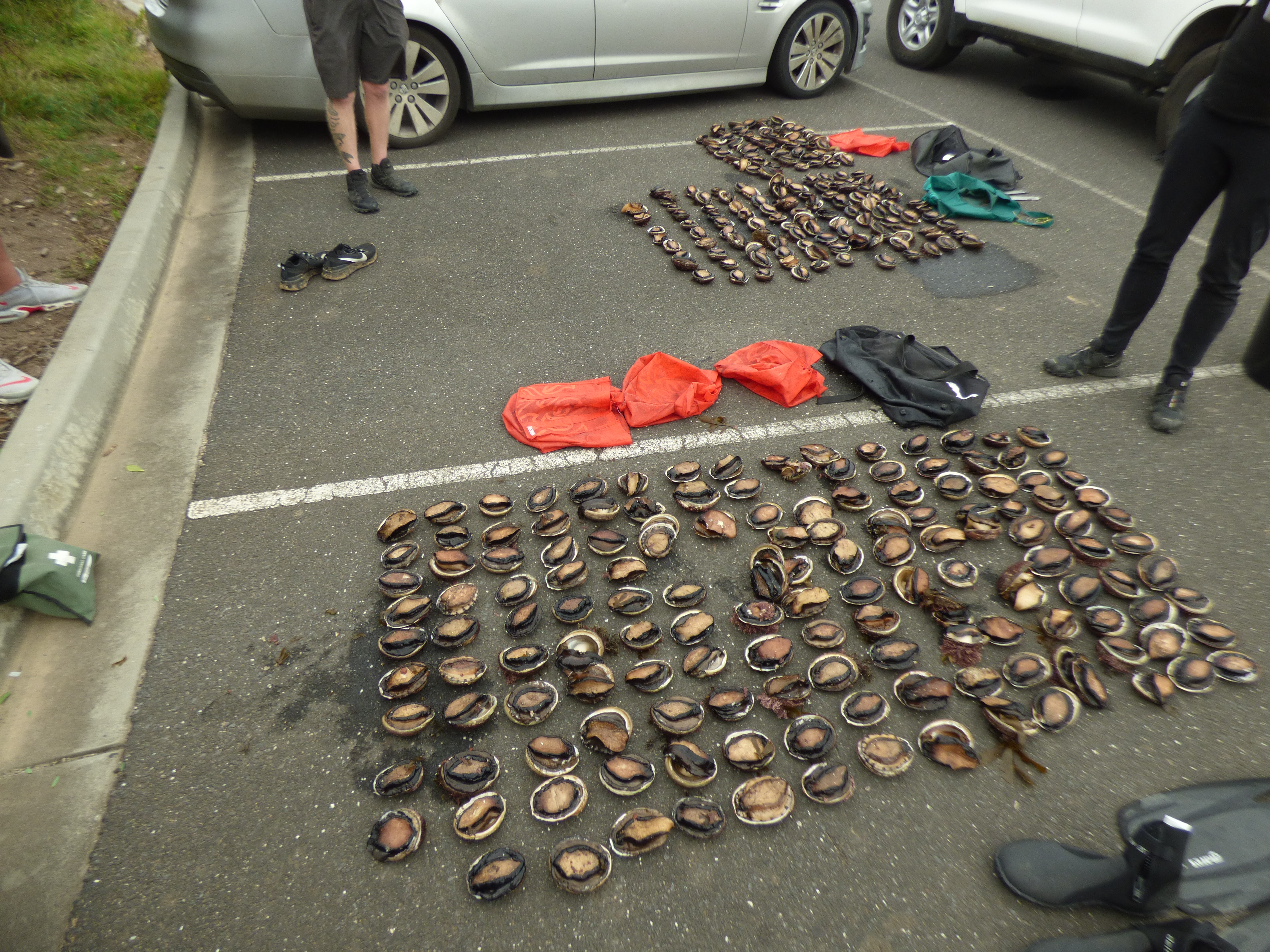 “When the four men returned to their Commodore and allegedly put a large bag of abalone in the boot, Fisheries Officers swooped in numbers. All five of the alleged offenders ran away, some not making it far and others hiding in dense scrub nearby until being located and arrested.