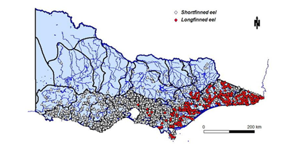The fishery focuses on harvesting eel stocks in Victorian coastal river basins south of the Great Dividing Range. Short-finned eels are found throughout the State, but long-finned eels are only found in eastern Victoria.