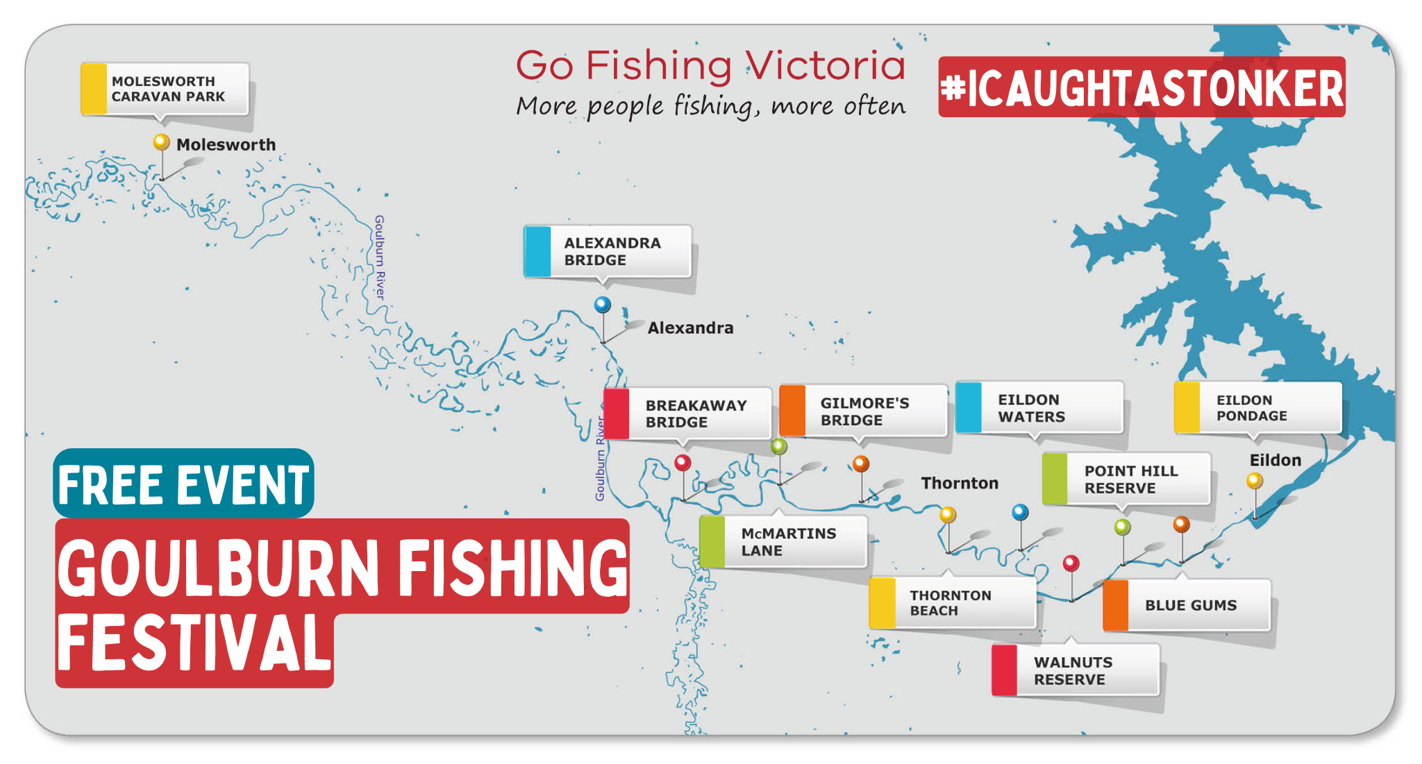 The Goulburn River (between Eildon and Molesworth) and Eildon Pondage was stocked with 1,500 massive ‘stonker’ trout weighing 3-4kg, at numerous sites and guaranteed to create lifelong memories for lots of fishers and their families.
